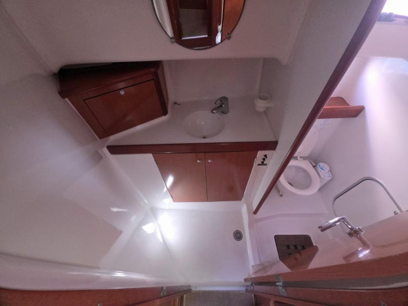 *Head on starboard side with Jabsco electric toilet, washbasin and shower