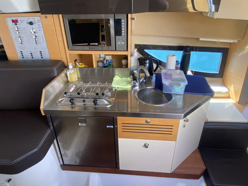 Owner’s version. With convertable V-settee, one head, dining area in cockpit, a refrigerator and microwave, entertainment systems, plenty of storage, and ample seating throughout the boat. Perfect for daily cruises.Last antifouling and engine service done in July 2025.