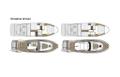 A width of 4,2 meters, combined with a length of 14,4 meters allow variants that include two or three cabins,
