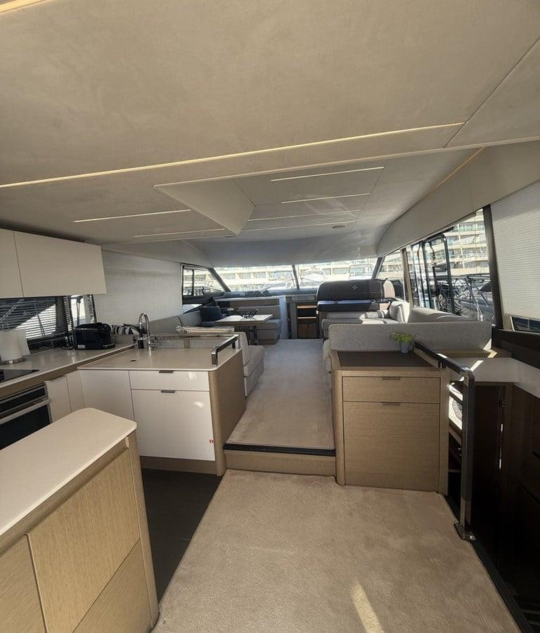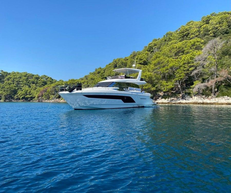 Prestige 590 Fly from 2022 for sale, registered in Croatia.Combining sleek styling with intelligent layout, the Prestige 590 Fly offersthree luxurious guest cabins plus a separate crew cabin, comfortablyaccommodating six guests and a crew. Powered by twin Cummins 600 HPengines, she cruises efficiently at 22–24 knots, with a top speed around 30knots.This model features a spacious flybridge with a hardtop, providing ampleshade and versatility for entertaining in all weather conditions. Panoramicsaloon windows, a fully equipped galley, hydraulic swim platform, and joystickdocking system enhance both comfort and handling. The Prestige 590 Flydelivers refined luxury with exceptional ease of use.