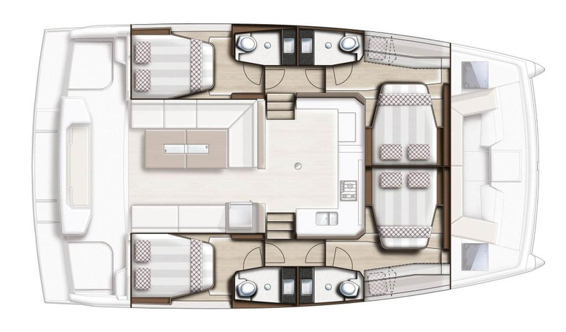 4 cabins, 8+2 berths, 4 heads.