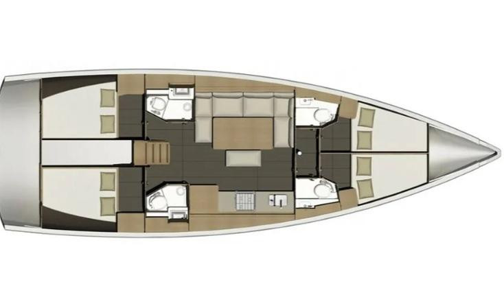 Layout: 4 cabins, 8+2 berths, 4 head.