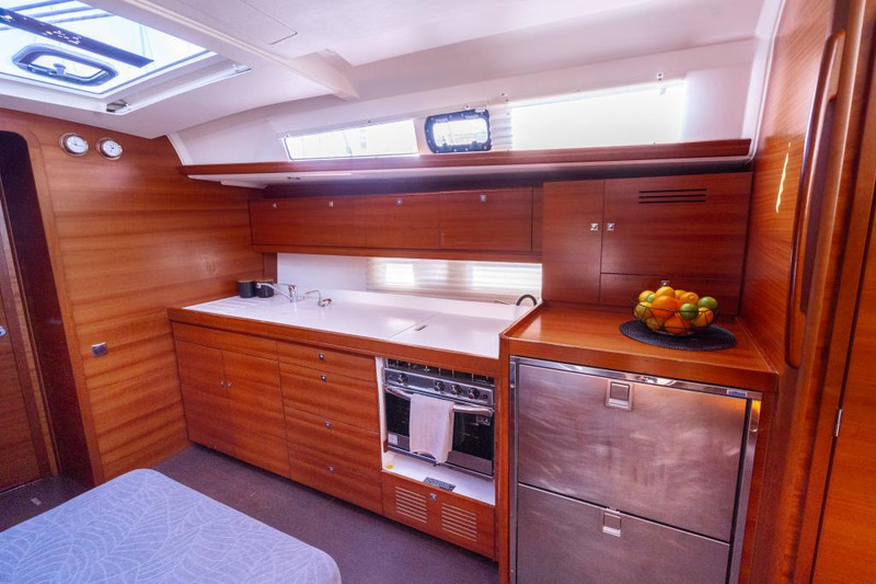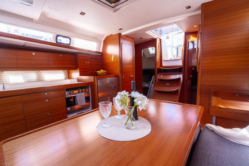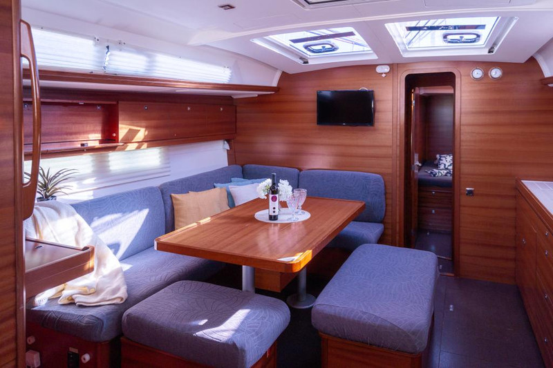 * L-shaped saloon settee with saloon table that can be converted to 2 additional berths (including cushion) + 2 seating benches