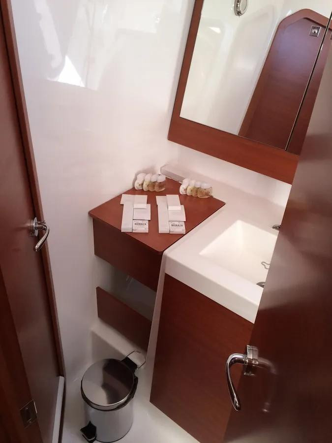 * 3 Heads with electric toilet, washbasin and shower (aft portside cabin head has full size shower cabin)