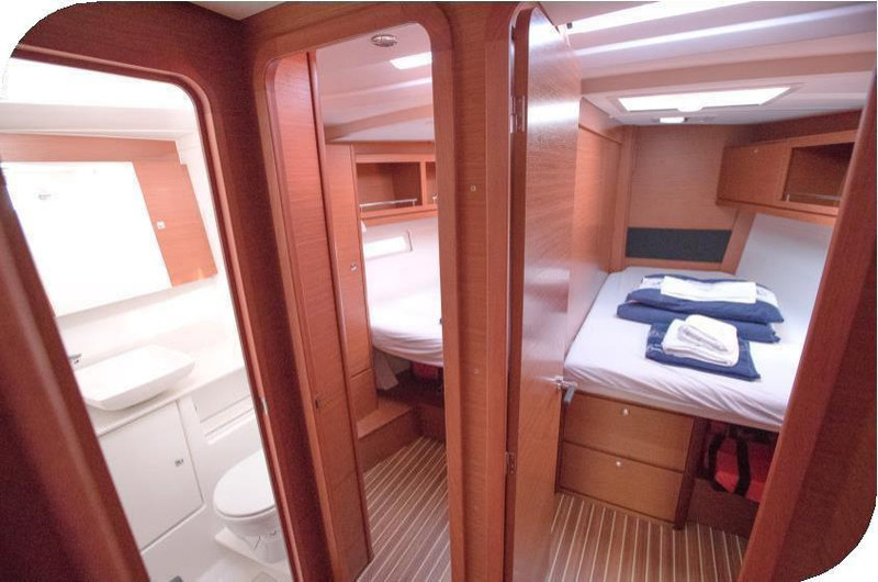 * Skipper cabin in bow with single bed, manual toilet and washbasin