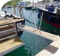 * Electrically openable swimming platform covered in teak with swimming ladder