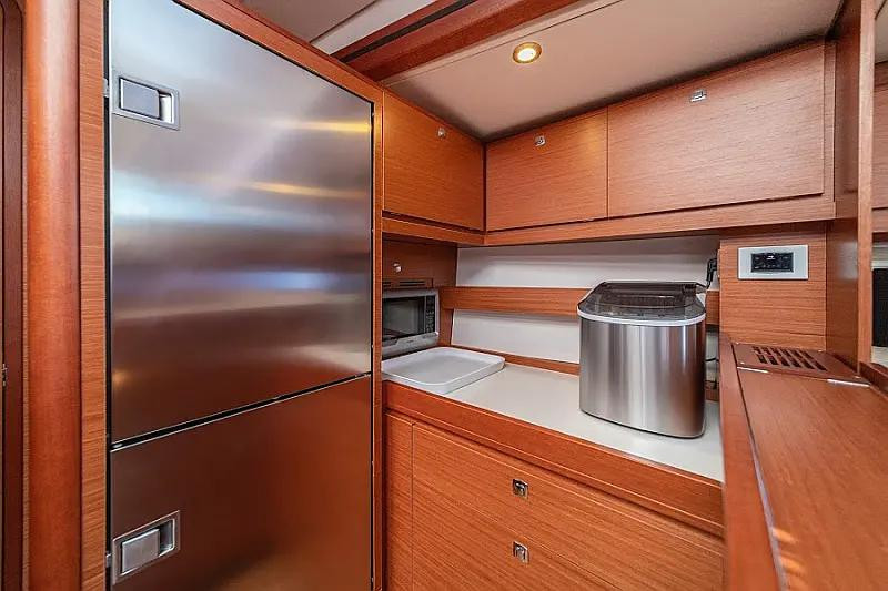 Featuring teak deck, electrically openable swimming platform, grill and sink at aft, refrigerator in cockpit etc.
