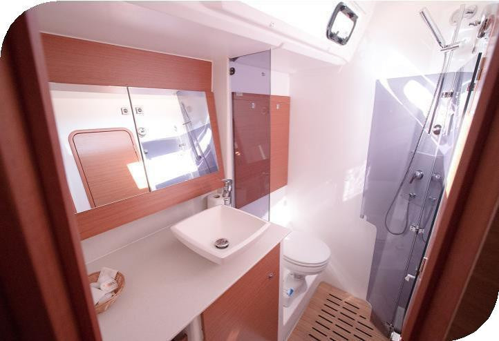 * 3 Heads with electric toilet, washbasin and shower (aft portside cabin head has full size shower cabin)