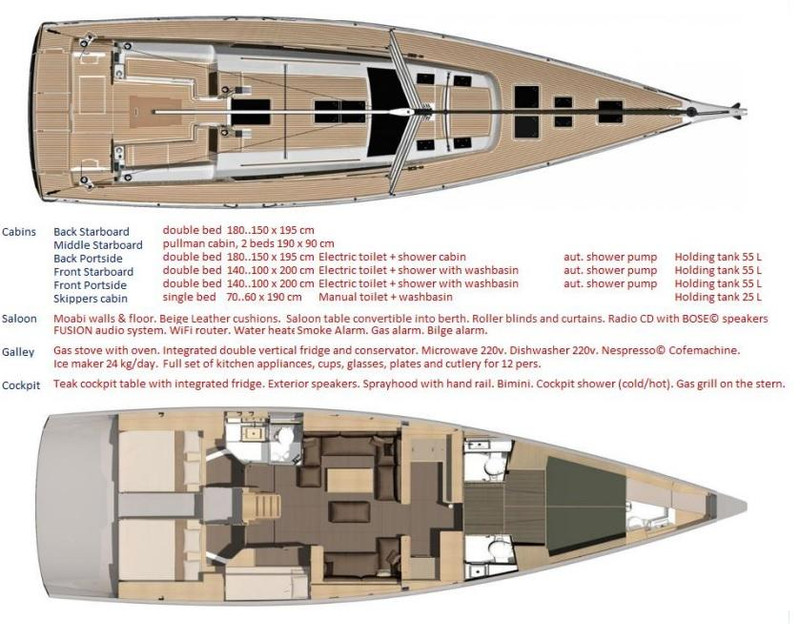 5+1 cabins, 10+1+1 berths, 3+1 heads
