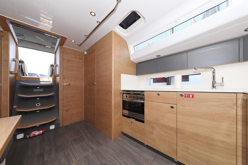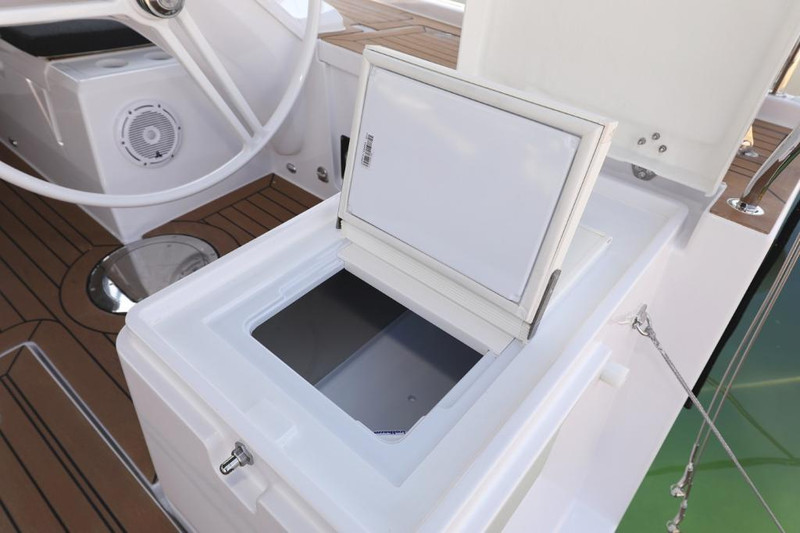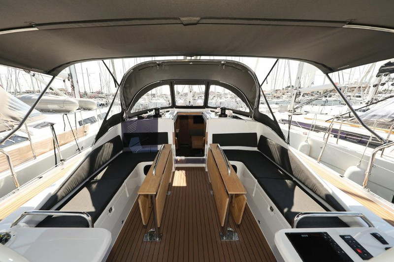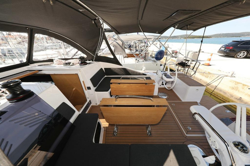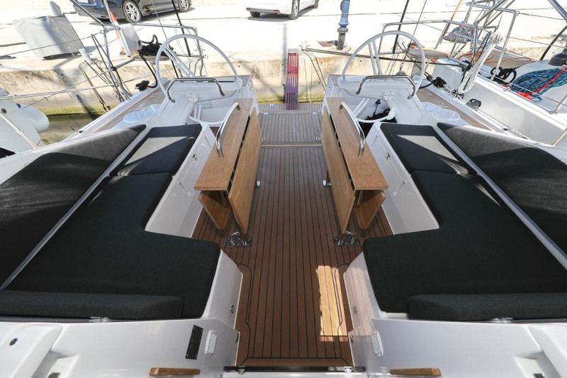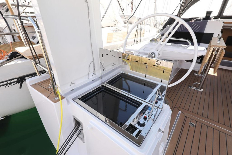 Featuring BBQ and fridge in cockpit and a large upgraded openable swimming platform covered in synthetic teak with swimming ladder. Teak cockpit tables upgrade with modular deployment and sunbed conversion option.