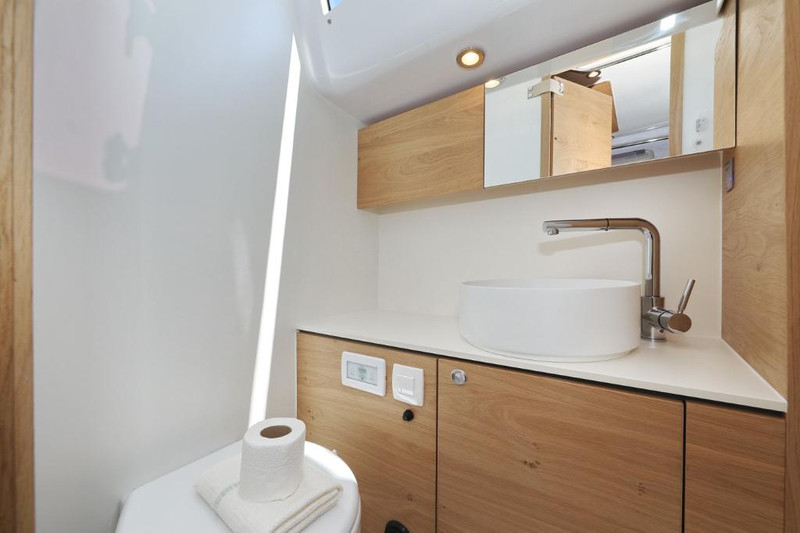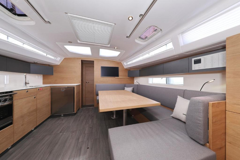 Equipped with air condition, air-heater, electric toilet, bow thruster, synthetic teak deck, dinghy with outboard engine, additional fridge, cockpit cushions with backrest, additional water tank, ambiental lightning, standard charter safety equipment, etc.