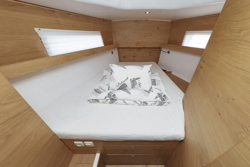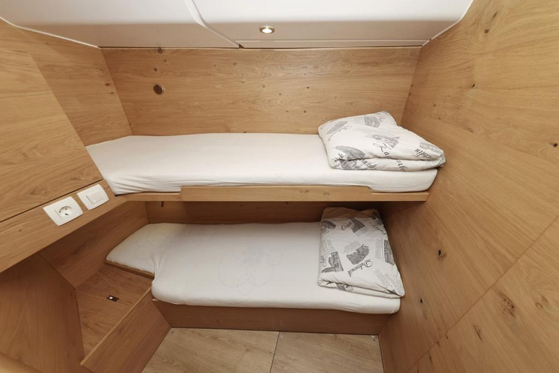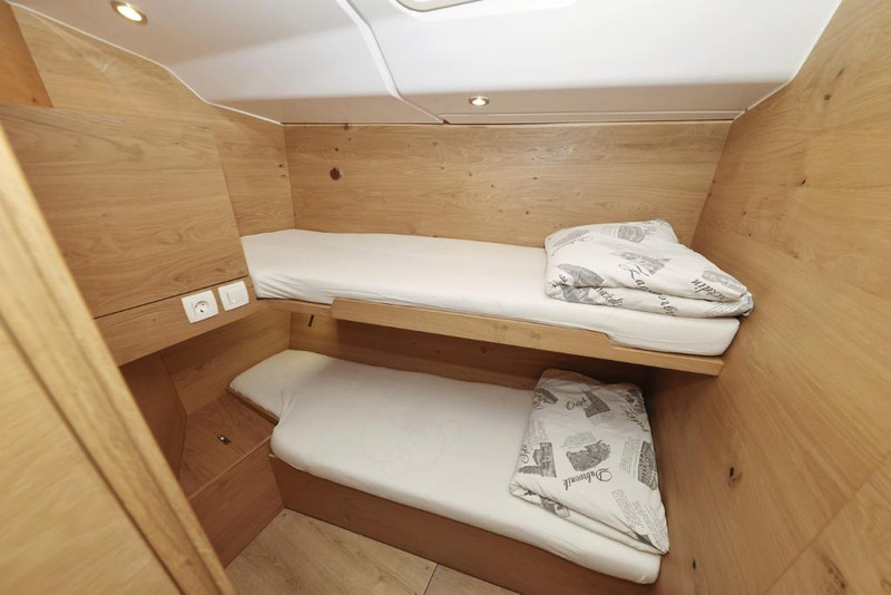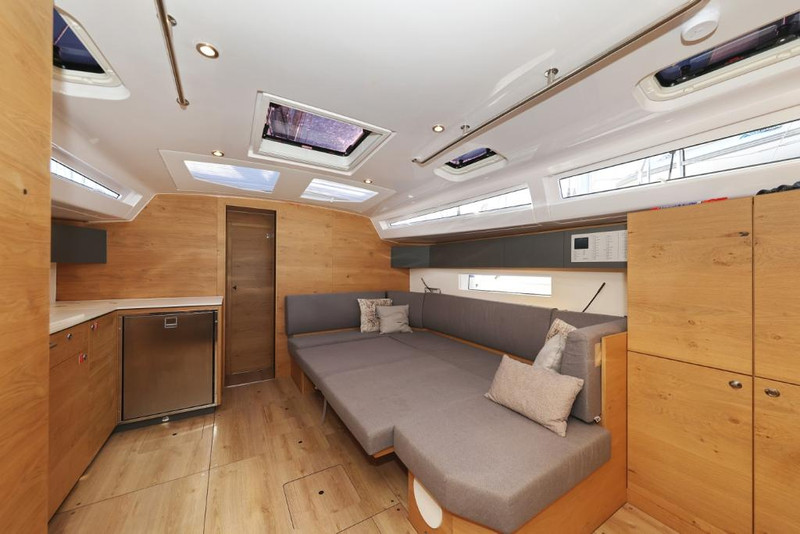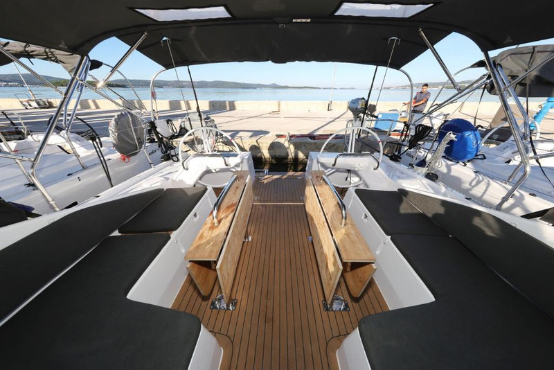 Equipped with air condition, electric toilet, bow thruster, dinghy with outboard engine, additional fridge, cockpit cushions with backrest, additional water tank, ambiental lightning, standard charter safety equipment, etc.