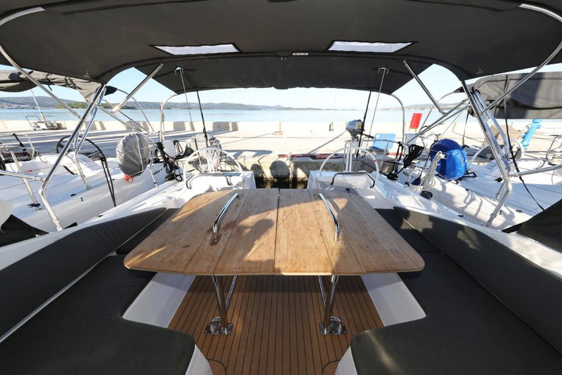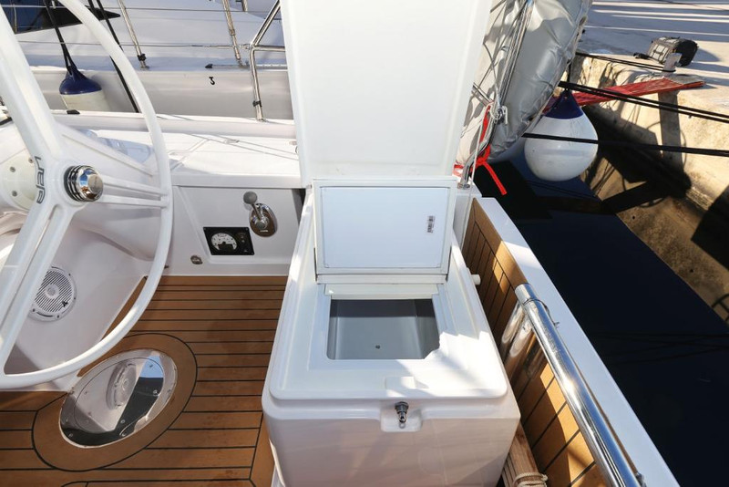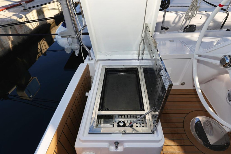 Featuring BBQ and fridge in cockpit and a large upgraded openable swimming platform covered in synthetic teak with swimming ladder. Teak cockpit tables upgrade with modular deployment and sunbed conversion option.