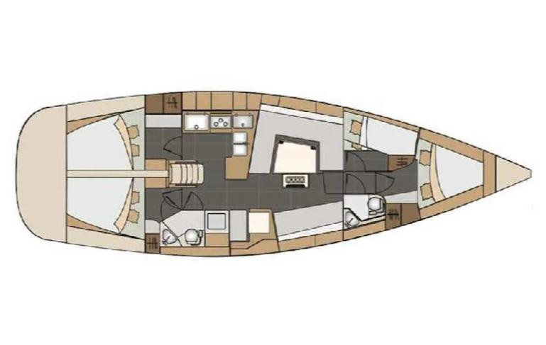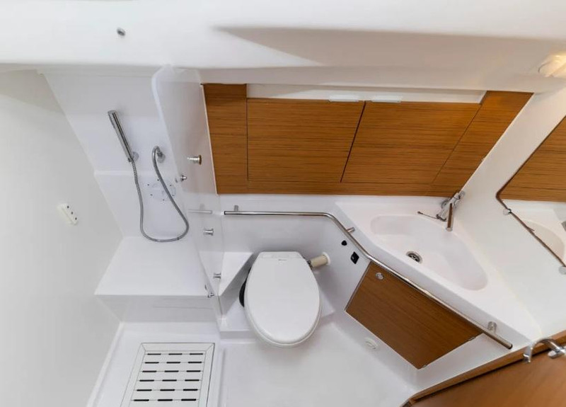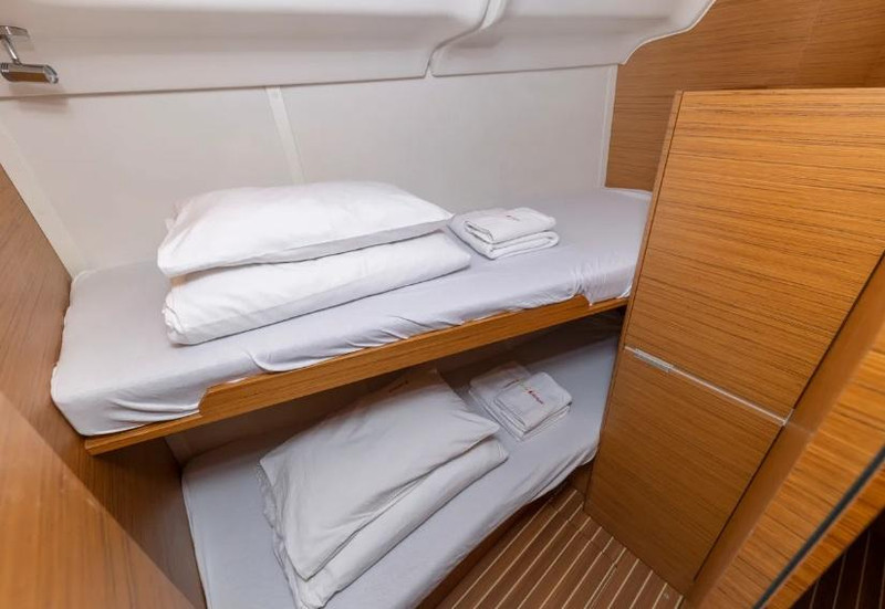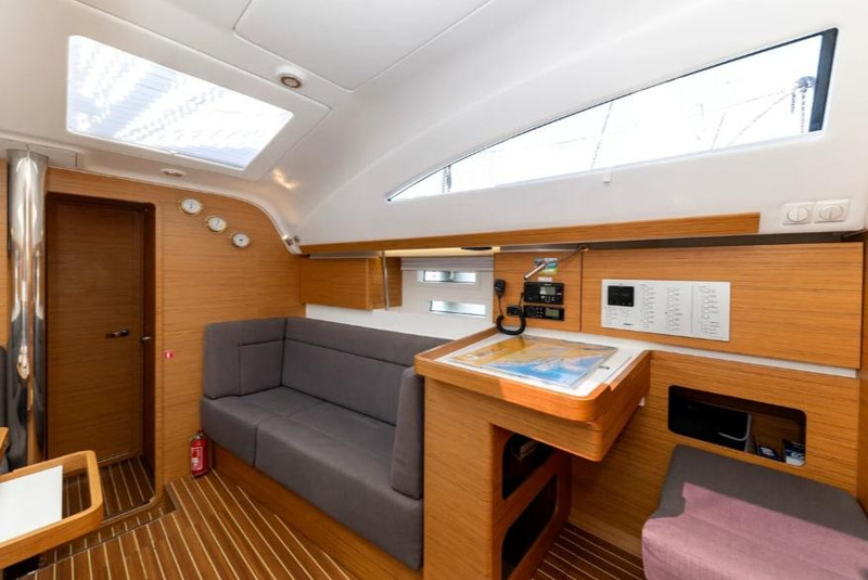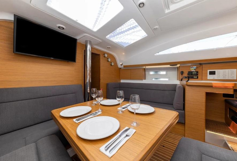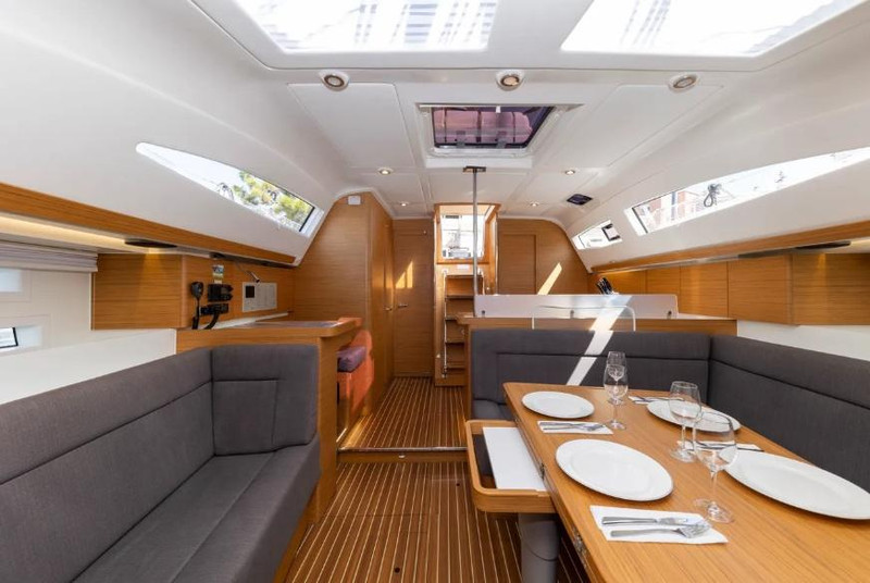 * L-shaped saloon settee with saloon table that can be converted to 2 extra berths + 2 chairs