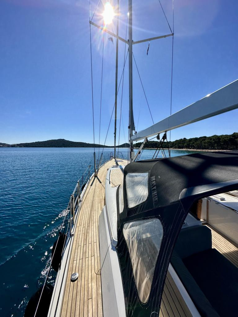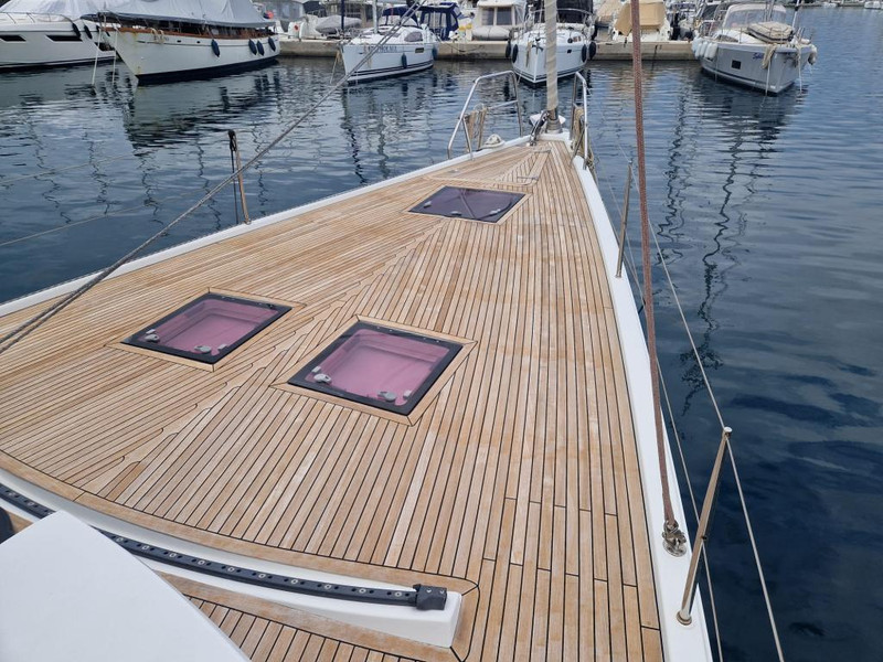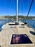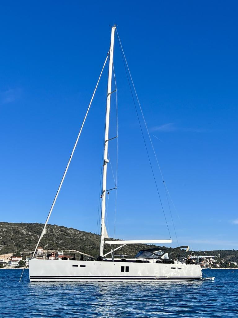 All halyards and sheets / Mooring lines / Diesel tank / Hot water boiler / Lithium battery for davits and stern thruster / 2 electric toilets from Techno / Swimming ladder + dinghy roller system made of V2A / Victron display + battery shunts for service batteries, bow and stern thrusters / Two LED reading lamps in each of the 3 cabins + saloon / Mosquito net and sunshade blind for each of the bow cabins / Sailserver Automatic / Electronic Logbook / All marine valves.