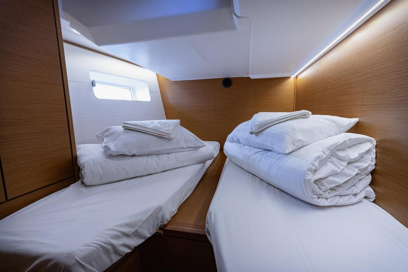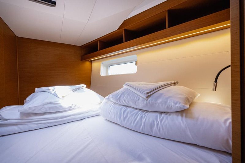 *2 Aftcabins with double beds, hanging lockers (starboard side bed separated into 2 berths)