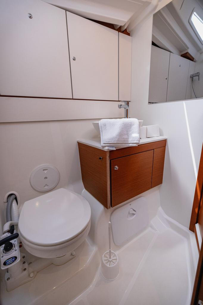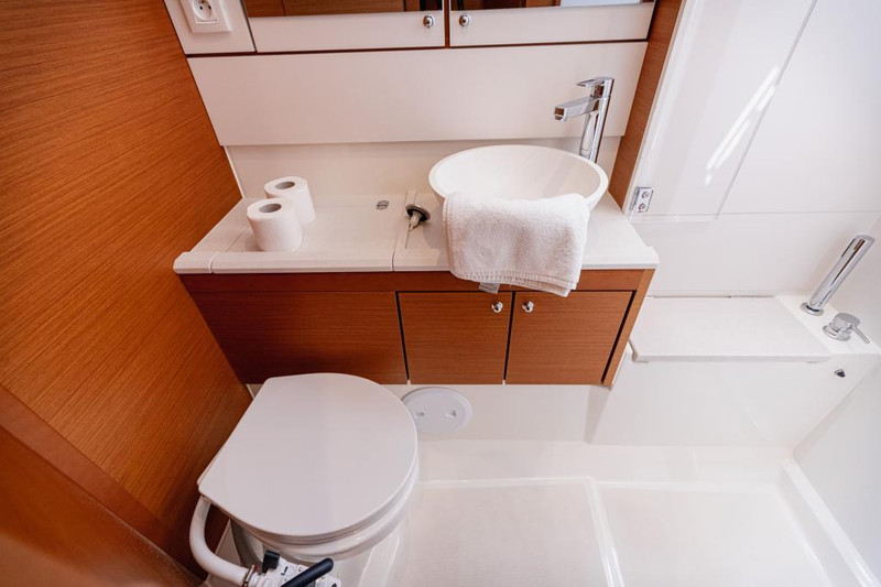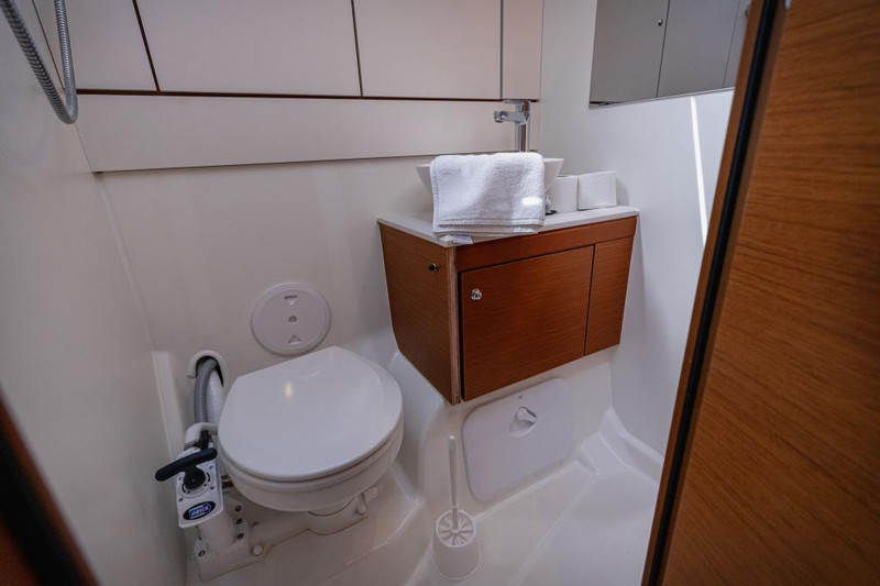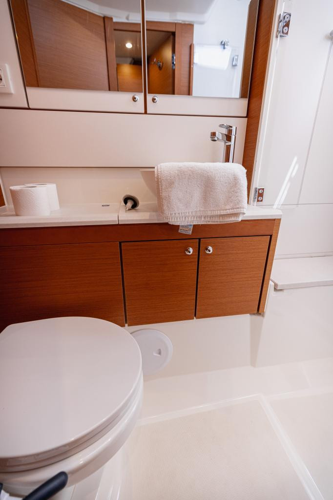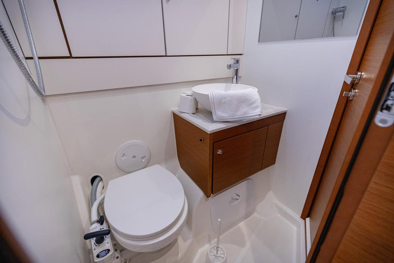 *4 Heads with Jabsco manual toilet, washbasin and shower (+1 crew cabin)