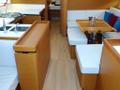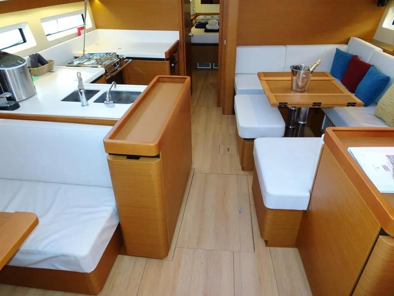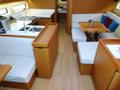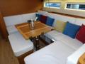 *U-shaped saloon settee with saloon table that can be converted to 2 extra berths and oppsite straight shaped seat