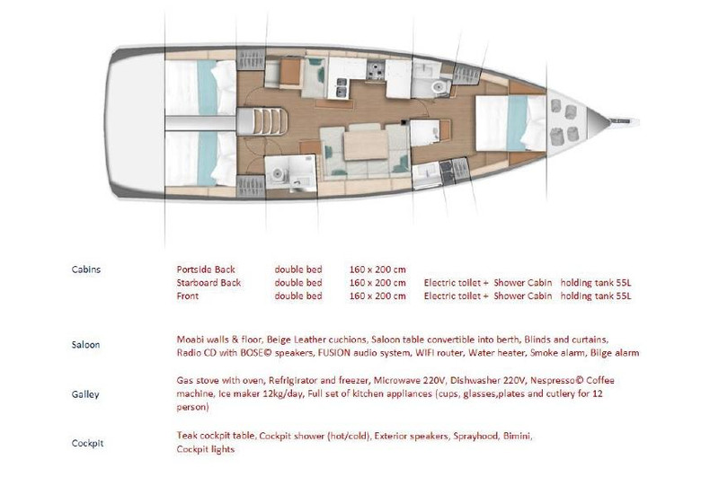 Equipped with generator, air condition, radar, electric winch, electric toilets, dishwasher, ice maker, dinghy with outboard engine, etc.