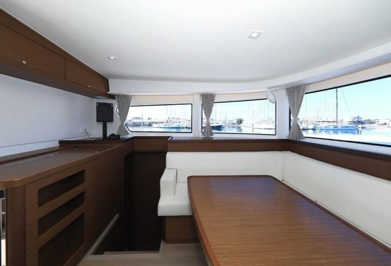 *L-shaped saloon settee with saloon table that can be converted to 2 extra berths + straight shaped seat