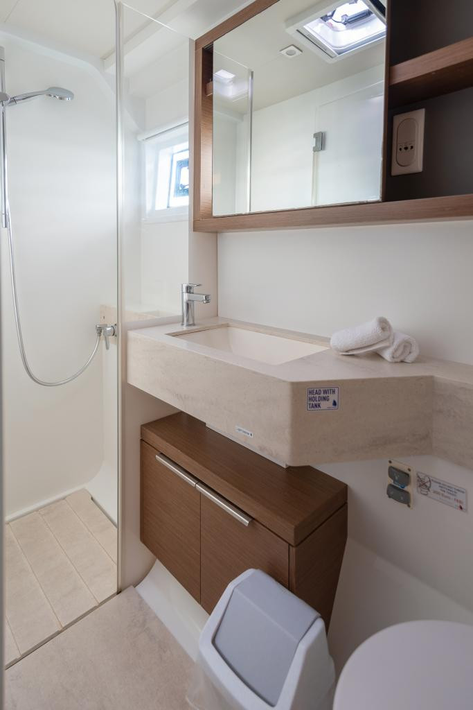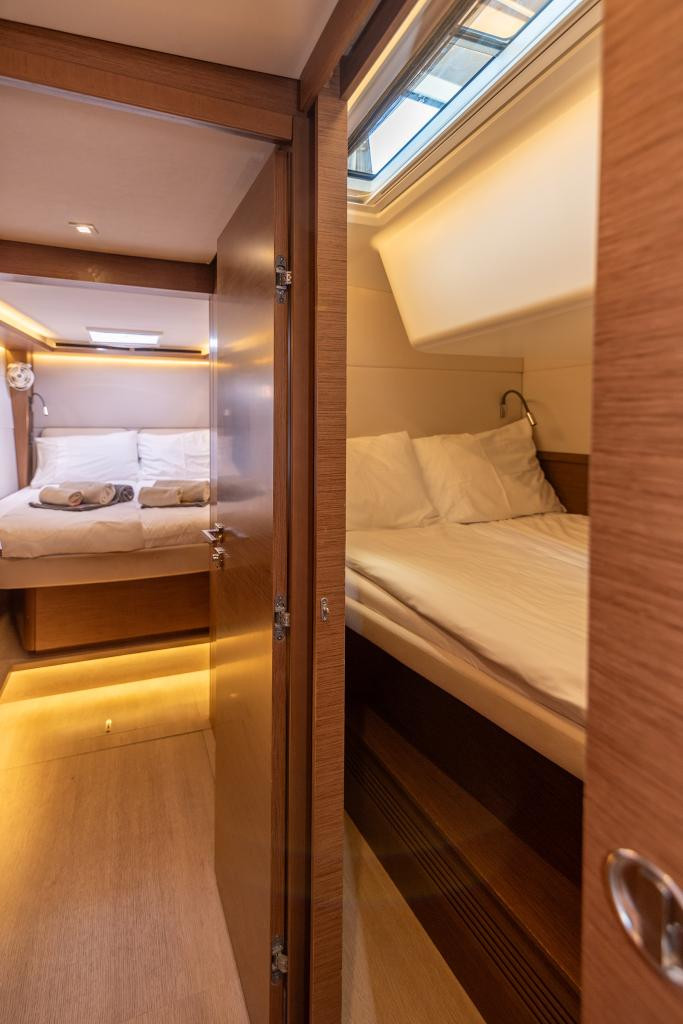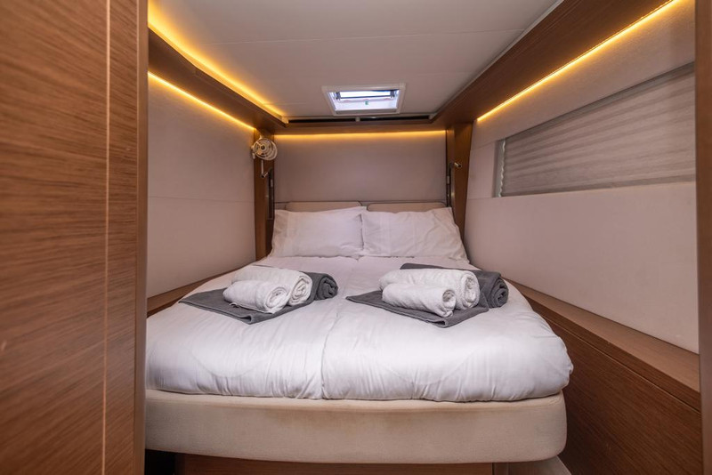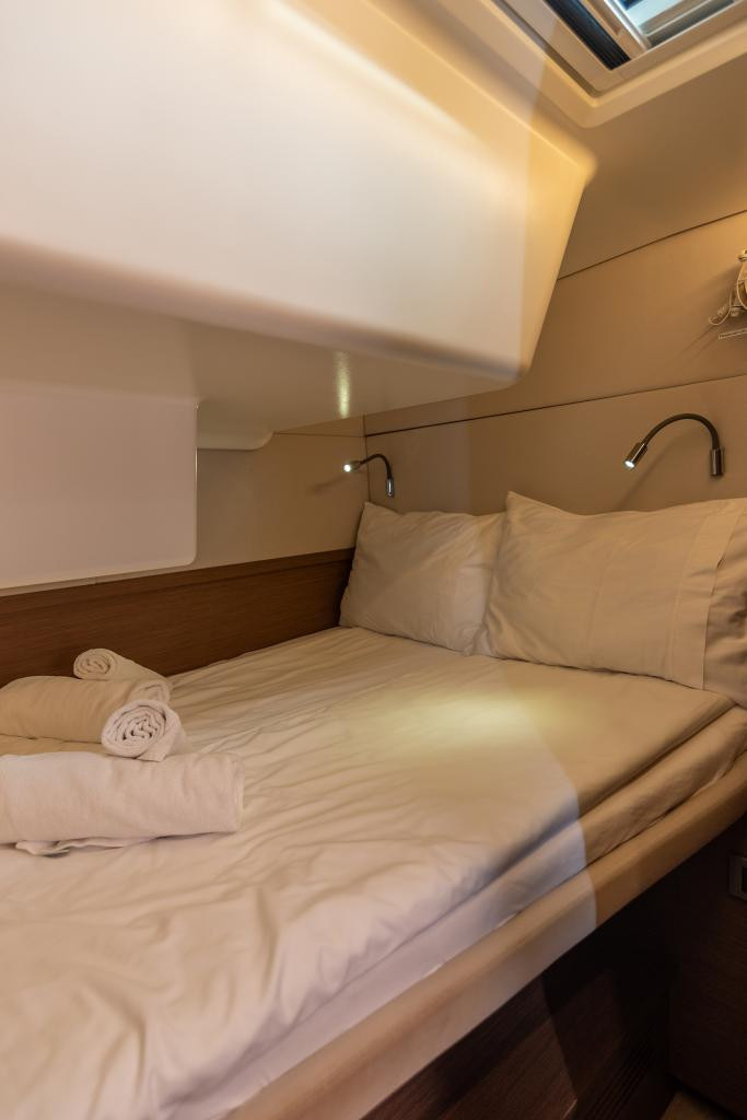 *Skipper cabin in bow portside with single bed and skipper manual toilet in bow starboard side