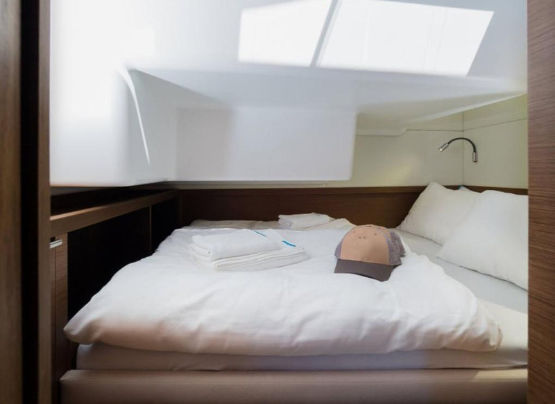 *Skipper cabin in bow portside with single bed and skipper manual toilet in bow starboard side