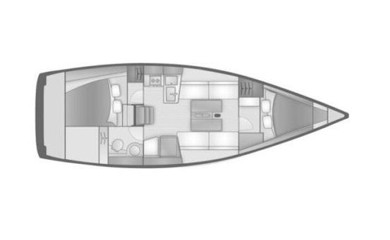 2 cabins, 4+1+1 berths, 1 head.